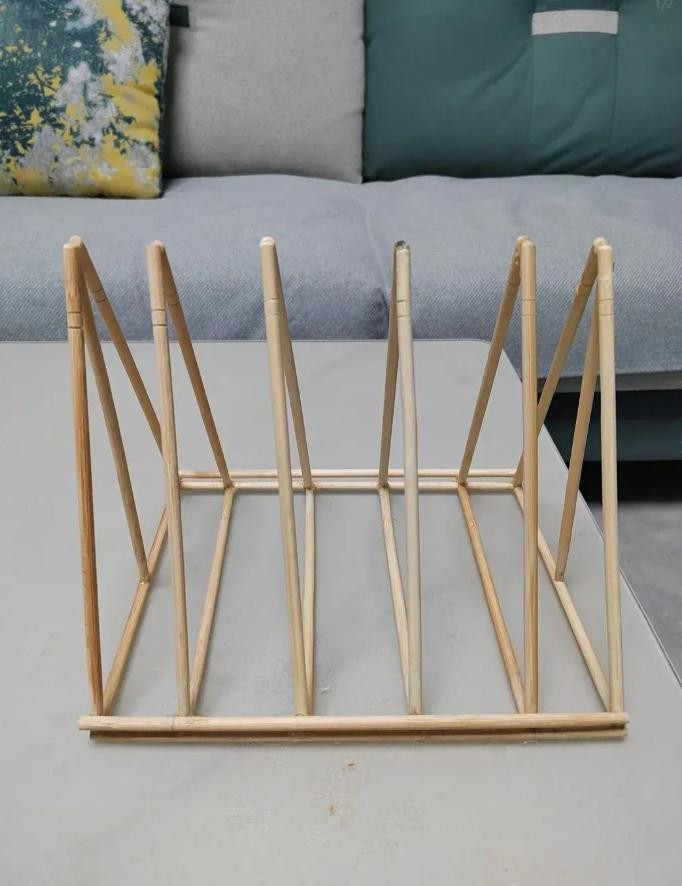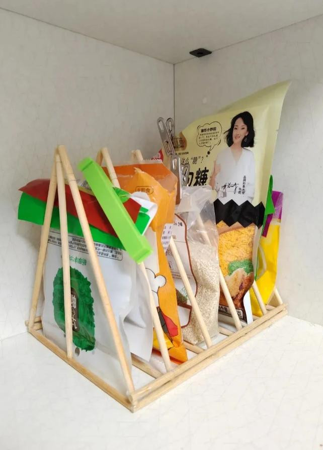 除了上头这些作念法以外,行家还不错照着底下的念念路,用一次性筷子作念厨房调料架。