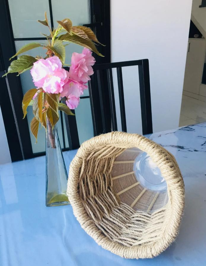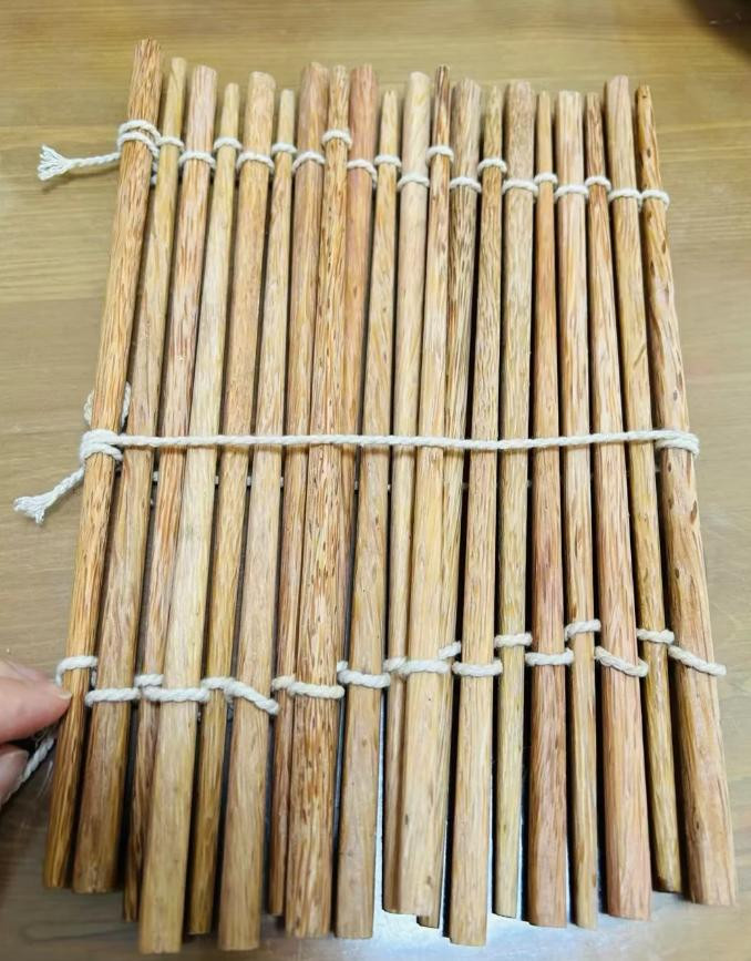 其实即是把一次性筷子剪一下,然后紧缚住,酿成“井”字型,大致干脆作念成网格状,亦大致是像底下这种平直陈设起来,这么一个极简的隔热垫就作念好了。