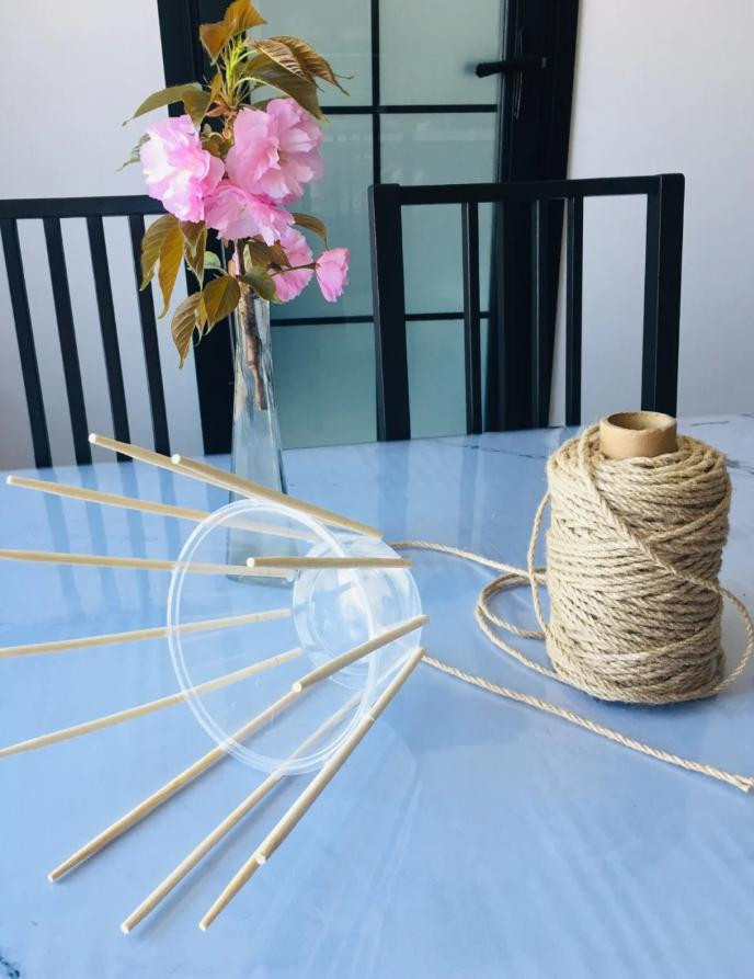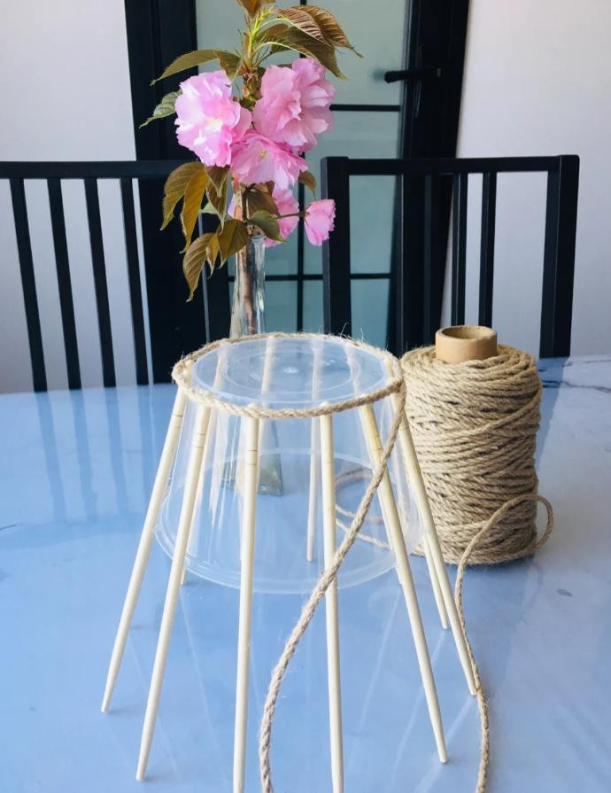 用外卖的盒子和一次性筷子,组合起来再用点麻绳,就不错作念露面子的果篮~