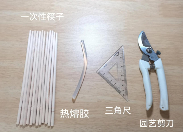 把外卖盒刷干净晾干,按照图示把一次性筷子循序粘到外卖盒的外围,不错平直用热熔胶粘贴固定。