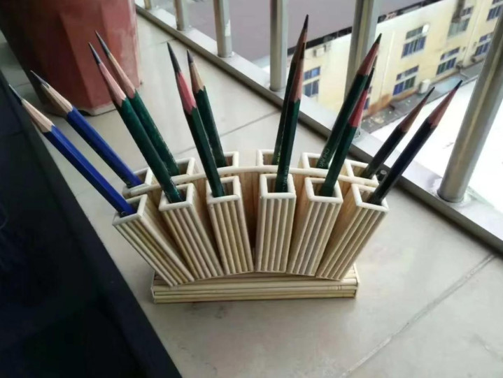 家里的一次性筷子囤多了,还有一个“浮滥大法”,那即是作念成笔筒。