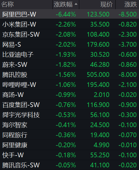 科网股大批下降,阿里巴巴跌超6%,京东集团、网易、小米集团跌逾2%,米兰体育官网腾讯控股、哔哩哔哩跌超1%,百度集团、商汤等集体走低。