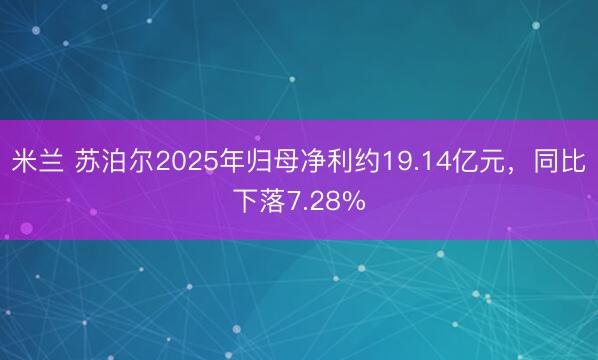 米兰 苏泊尔2025年归母净利约19.14亿元,同比下落7.28%