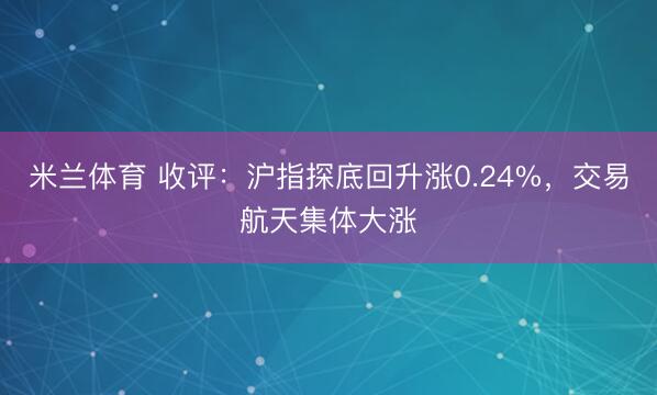 米兰体育 收评:沪指探底回升涨0.24%,交易航天集体大涨