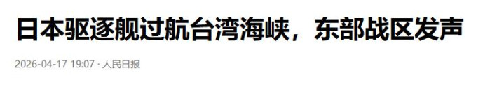 这次强行穿航台湾海峡的日本舰艇,为日本“雷”号收场舰,穿航时刻为4月17日4时02分至17时50分,全程接续十余个小时。不同于平淡的飞动通行,这艘日舰的穿飞动为带有昭彰的寻衅意味,其飞动蹊径并非最优弃取,老到刻意为之。