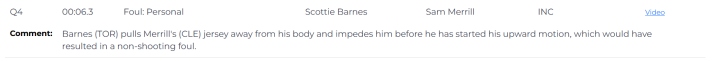 终场仅剩6秒,巴恩斯拉扯梅里尔球衣、提前卡位违背上篮,合规非投篮犯规全程漏判。