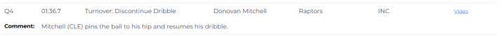 终场前1分36秒,米切尔胯下夹球后二次违章运球,米兰现场裁判未即时叫停判罚;