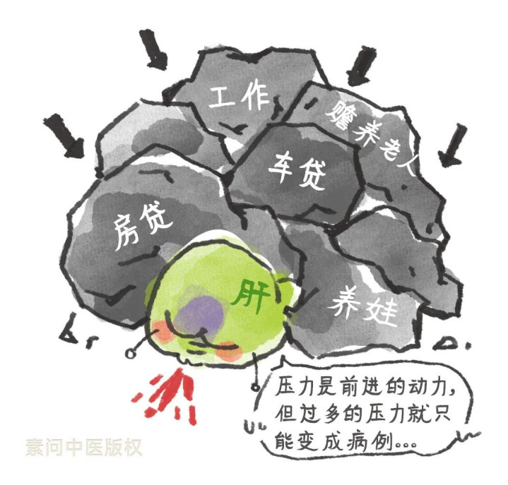 第三,咫尺是春天,春天属木,对应五脏在肝,肝气容易过旺。再遭遇多样压力,肝气得不到调畅,得不到疏泄,况兼被郁在那,莫得出口。