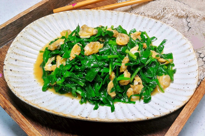 【材料】:韭菜200克,蛤肉150克,盐适量,生抽1勺,油适量