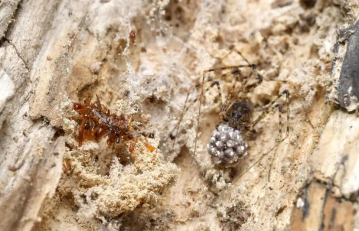 通盘窠巢并不算太重,它们不错背着窠巢出动,然后就这样一直在蜘蛛眼皮子底下讨生计,直到结茧和长出翅膀形成成虫。