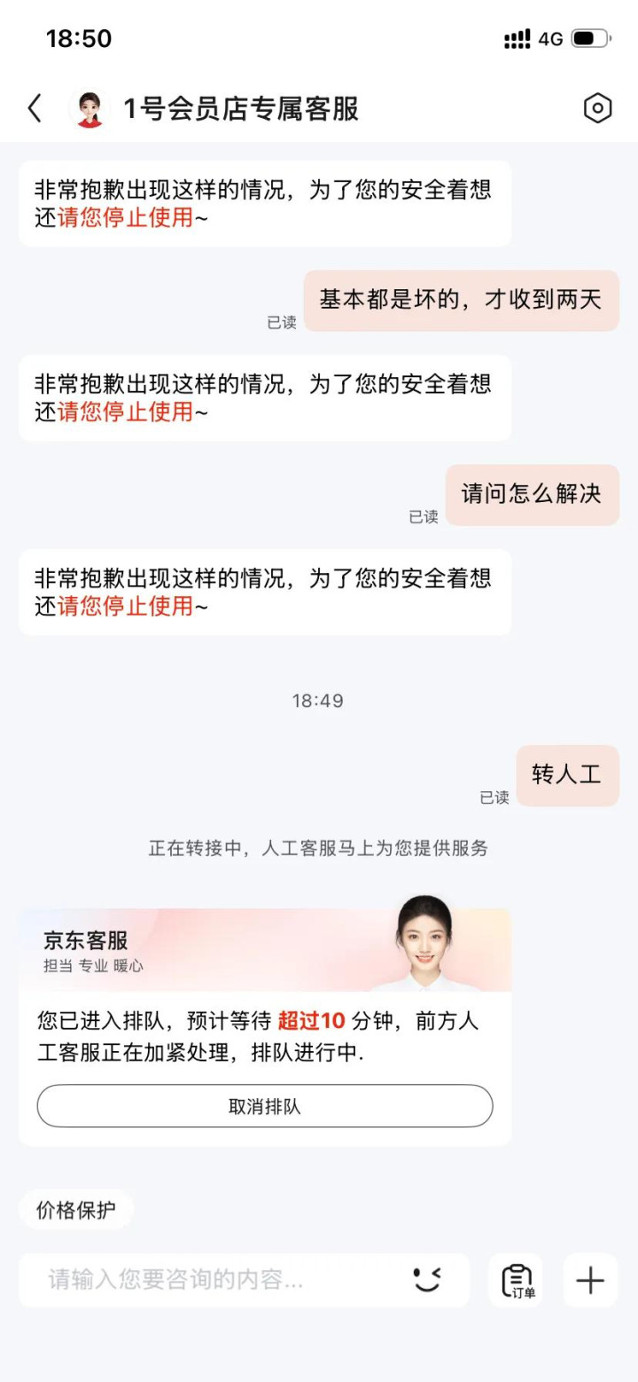 好纰漏易转到东谈主工,京东也仅仅退款了事,至于你吃了嗅觉不快活那是你的事。