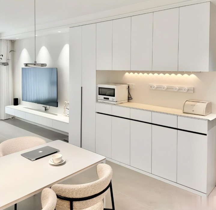 而我家遴荐墙面的技艺,也曾决定作念庸碌的乳胶漆,也莫得进行调色,即是纯白的乳胶漆。