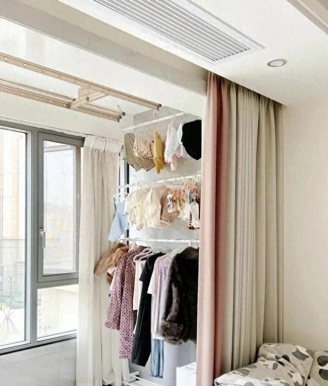 好多东说念主把晾衣杆径直挂在墙垛顶的蔓延木作上,稳、粉饰、看着也整洁。