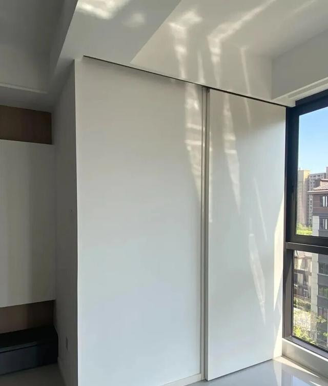 沿着墙垛作念通顶窄柜或半高柜,把墙垛全部包进去,门板作念无把手,平王人不拖累。
