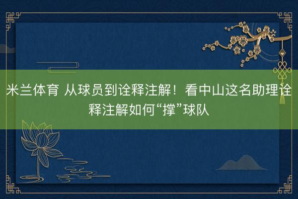 米兰体育 从球员到诠释注解!看中山这名助理诠释注解如何“撑”球队