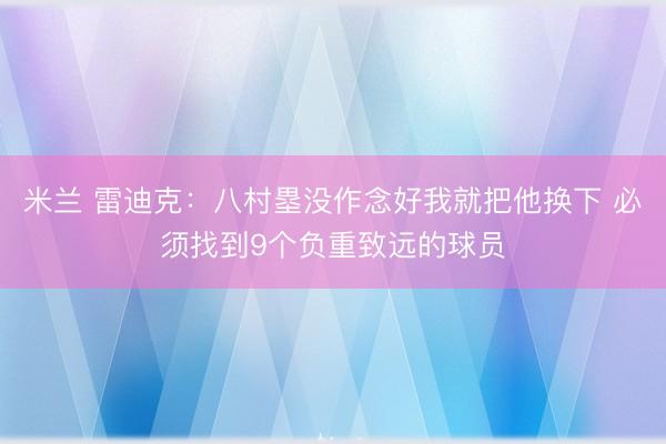 米兰 雷迪克:八村塁没作念好我就把他换下 必须找到9个负重致远的球员
