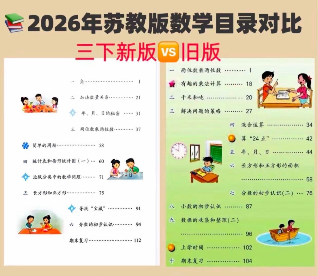 2026春季学期苏教版数学三年龄(下)目次变化米兰。