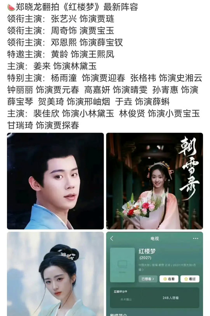 #曝红楼梦翻拍选角##郑晓龙翻拍红楼梦