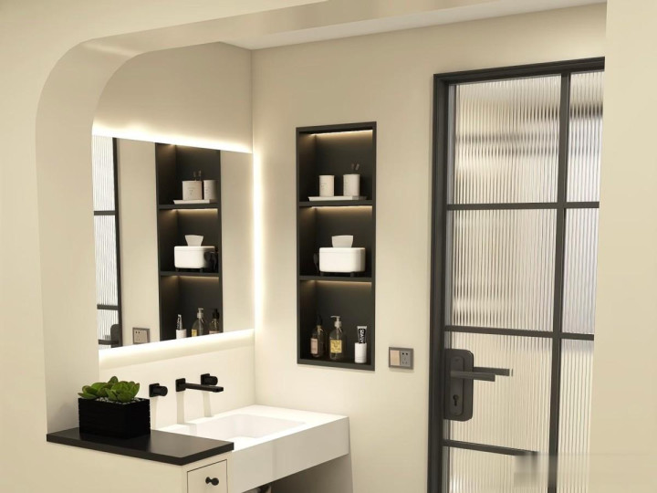 壁龛不会占用稀疏空间,可以说是小卫生间的收纳救星,何况举座感官很强,好意思不雅又大方。