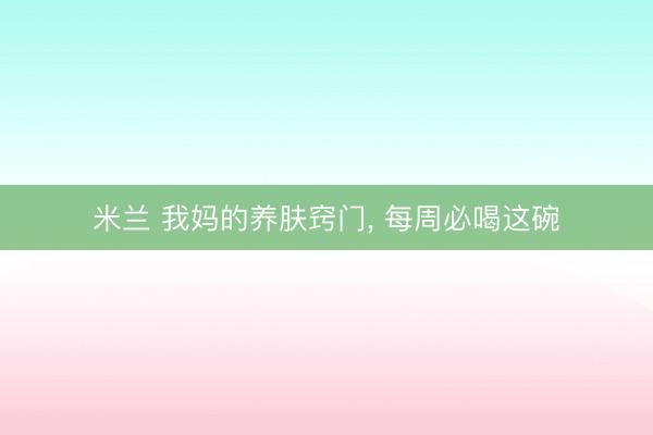 米兰 我妈的养肤窍门, 每周必喝这碗