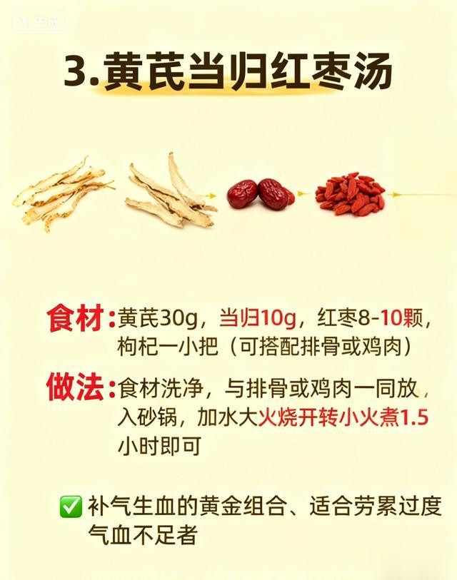 第三款是黄芪当归红枣汤,也即是常说的“打工东谈主抗疲惫组合”。