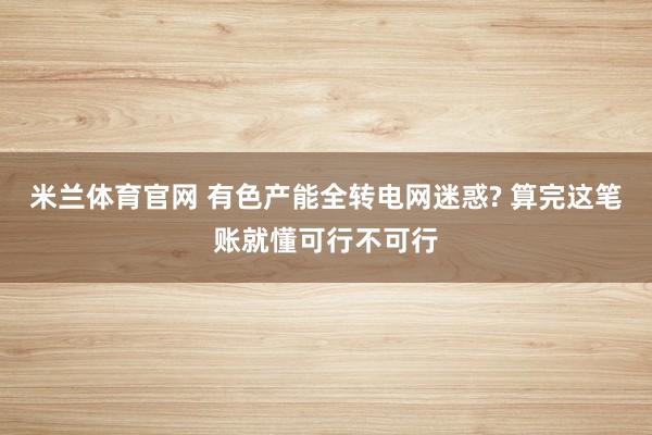 米兰体育官网 有色产能全转电网迷惑? 算完这笔账就懂可行不可行
