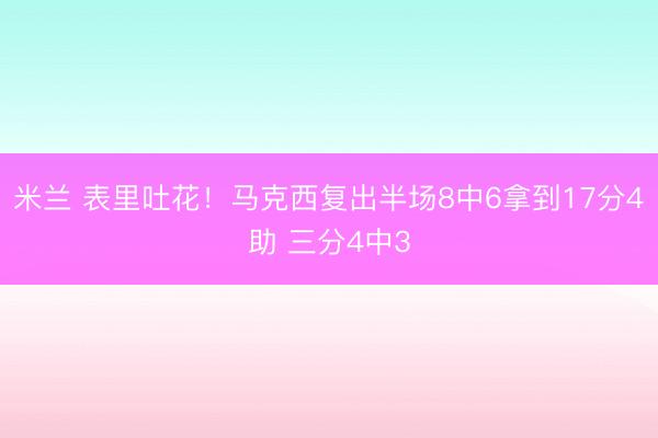 米兰 表里吐花!马克西复出半场8中6拿到17分4助 三分4中3