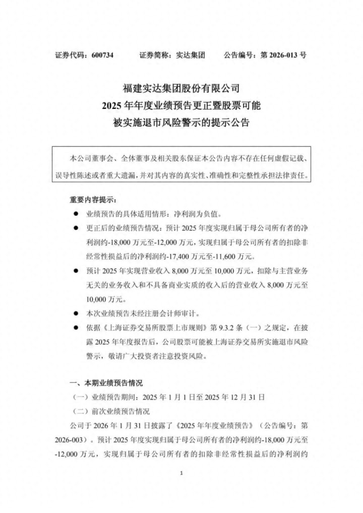 确立于1988年、被誉为“国内A股上市的首家IT企业”的实达集团,在2025年度交出了一份令市集恐慌的获利单。4月17日,实达集团发布了“2025年年度事迹预报翻新暨股票可能被实践退市风险警示的指示公告”。