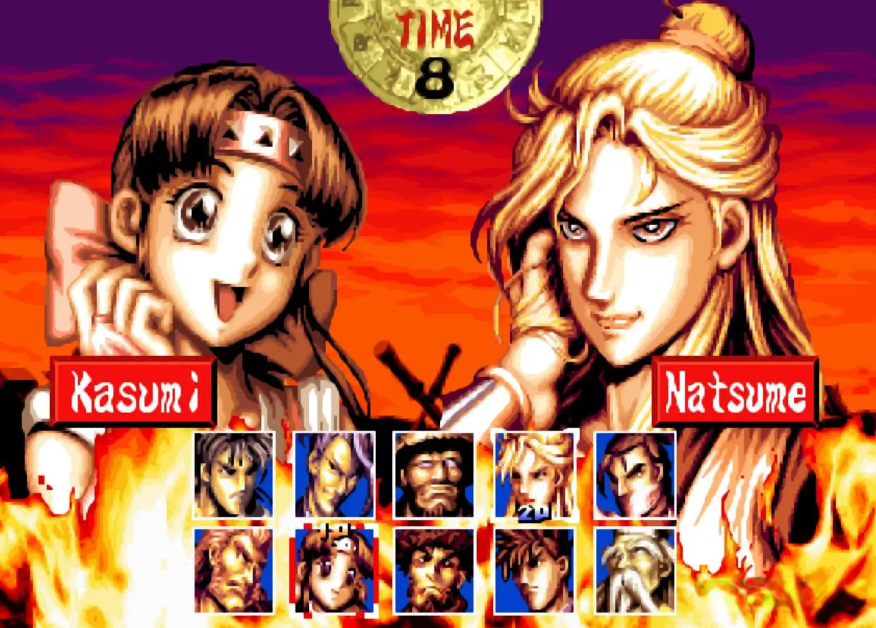 在《NEOGEO竞技场》中琪莎拉和雅典娜两位大姑娘合影。