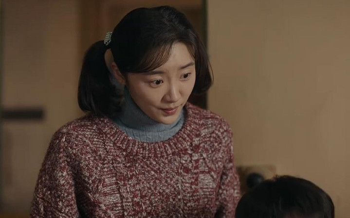 剧中饰演单亲母亲,独自拉扯两个孩子。