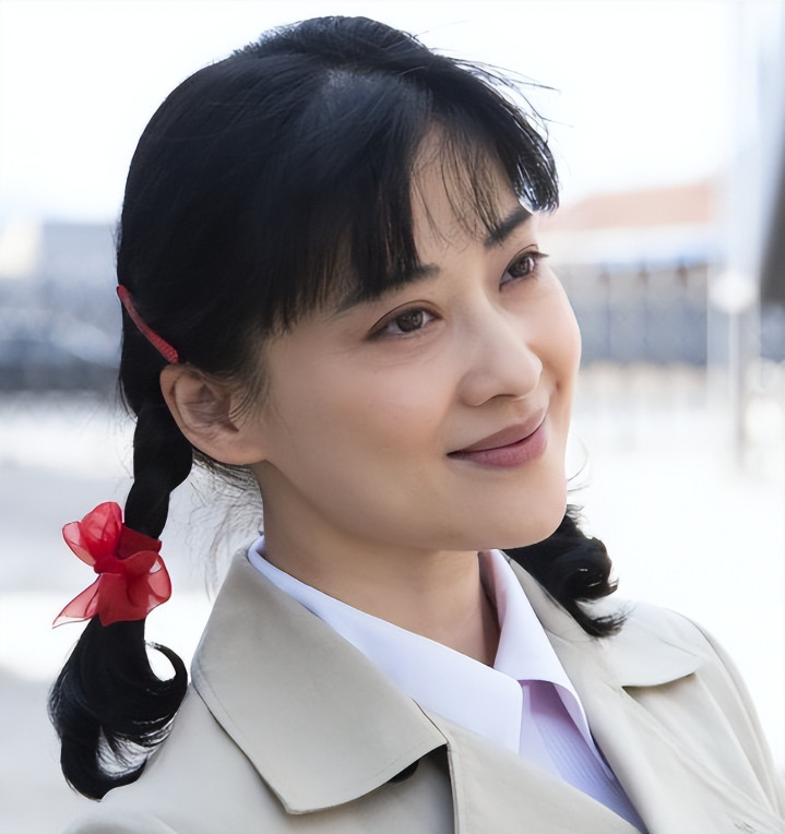 造型师给她扎上双马尾,换上朴素学生装。
