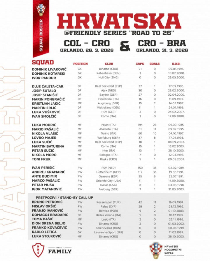 5 - 克罗地亚国度队名单:莫德里奇领衔,国米苏西奇入选