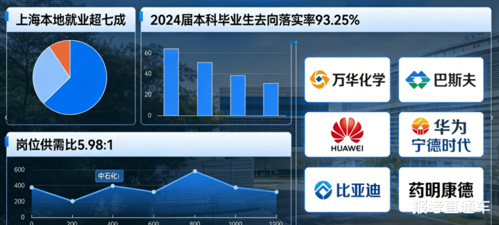 在处事问题上,上海腹地对华理的认同度极高,2024届本科毕业生中,毕业生在上海市处事的比例超七成。而放眼寰球,华理的行业认同度更是有目共睹。2024届本科毕业生去处落实率达93.25%,岗亭供需比达5.98:1,优质岗亭供给终点填塞。