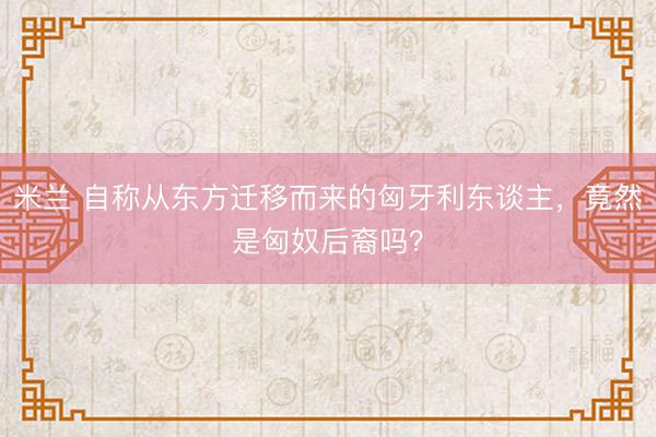 米兰 自称从东方迁移而来的匈牙利东谈主,竟然是匈奴后裔吗?