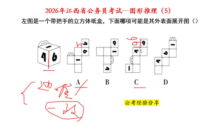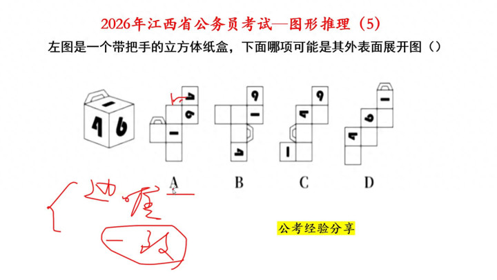 米兰 2026年江西省公事员探员, 图形推理5, 探员折纸盒图形纪律